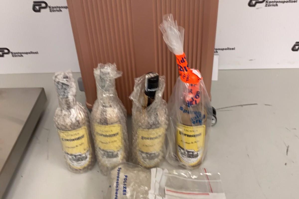 Fahnder der Kantonspolizei Zürich unterzogen sie einer Routinekontrolle im Transitbereich. Dabei stellten die Polizisten im Reisegepäck der Frau vier mit Kokain befüllte Spirituosenflaschen sicher.