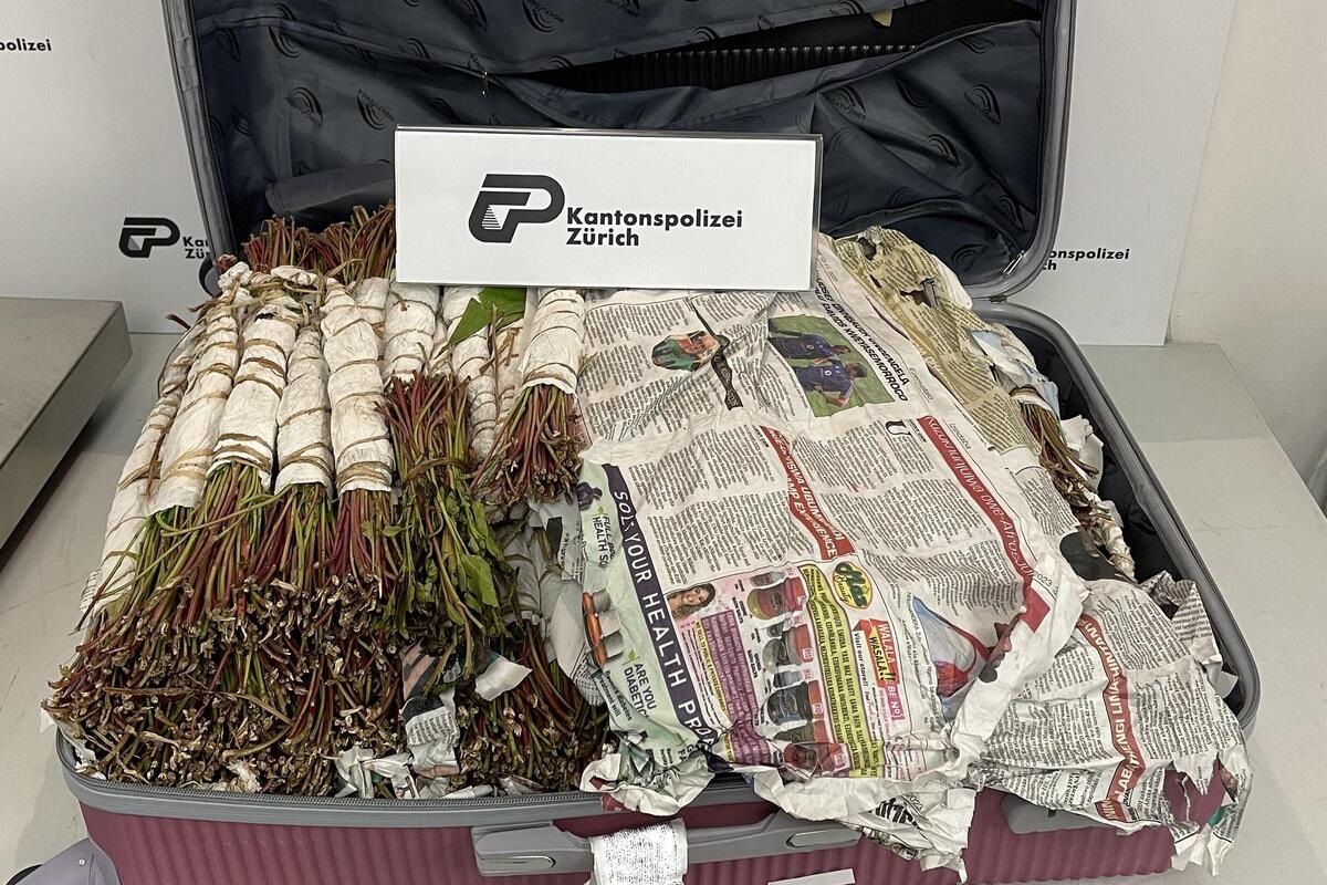 Die Kantonspolizei Zürich hat gestern, 12.06.2023, am Flughafen Zürich eine mutmassliche Drogenkurierin festgenommen. In zwei Koffern wurden rund 46 Kilogramm Khat gefunden.