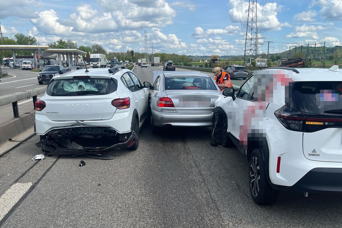 Drei beschädigte Autos nach Auffahrkollision auf der A1 (Bildquelle: Kantonspolizei Solothurn)