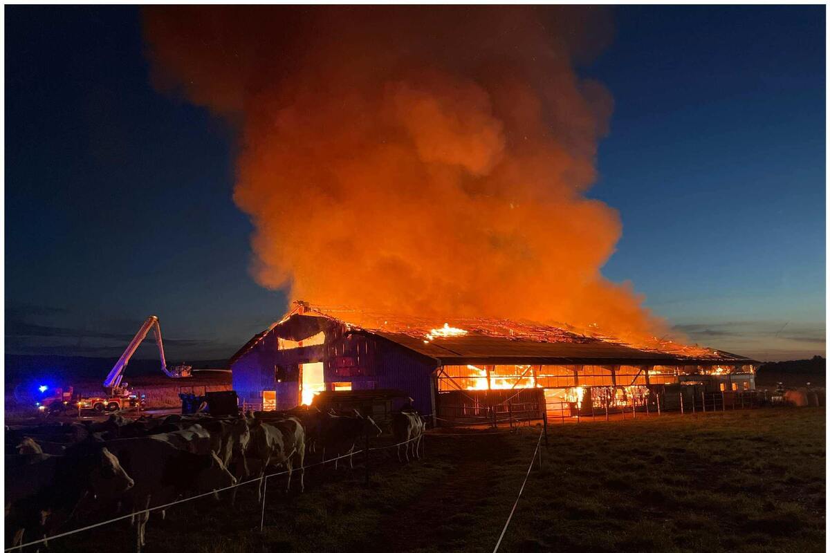 Trotz ihren Bemühungen wurde das Gebäude vollständig zerstört. Die Tiere konnten in Sicherheit gebracht werden. Eine verletzte Kuh musste jedoch vor Ort euthanasiert werden.