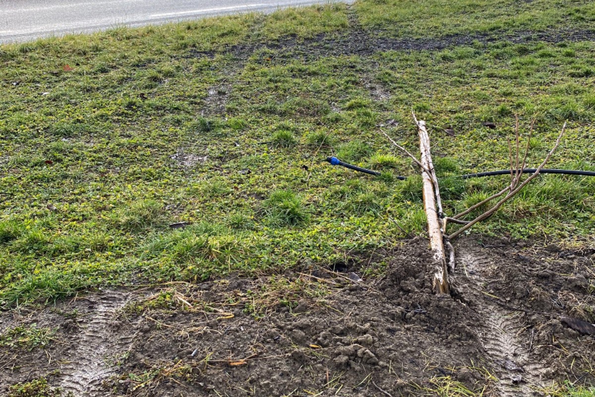 Beim Durchqueren des Feldes sind mehrere Bäume und Bewässerungsinstallationen beschädigt worden. (Bildquelle: Kantonspolizei Thurgau)