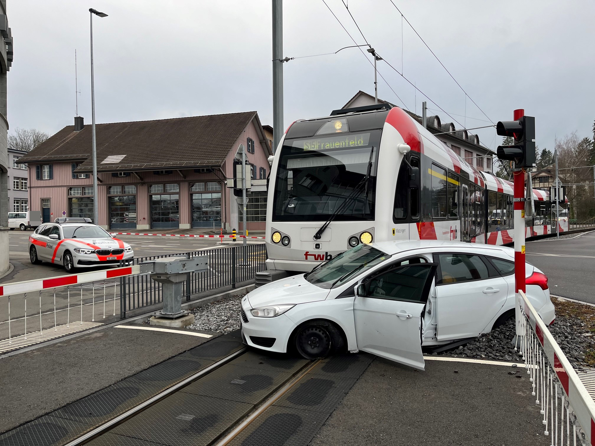 Bei der Kollision zwischen einem Auto und einer Zugskomposition der Frauenfeld-Wil-Bahn wurde am Montag in Frauenfeld der Autofahrer leicht verletzt. Die Zugstrecke war kurzzeitig unterbrochen, es wurden Ersatzbusse eingesetzt.