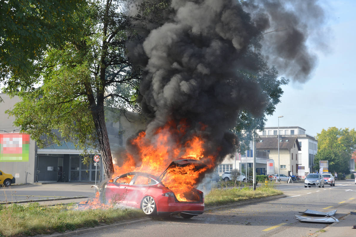 Autobrand nach Verkehrsunfall in Frauenfeld (Bildquelle: Kantonspolizei Thurgau)