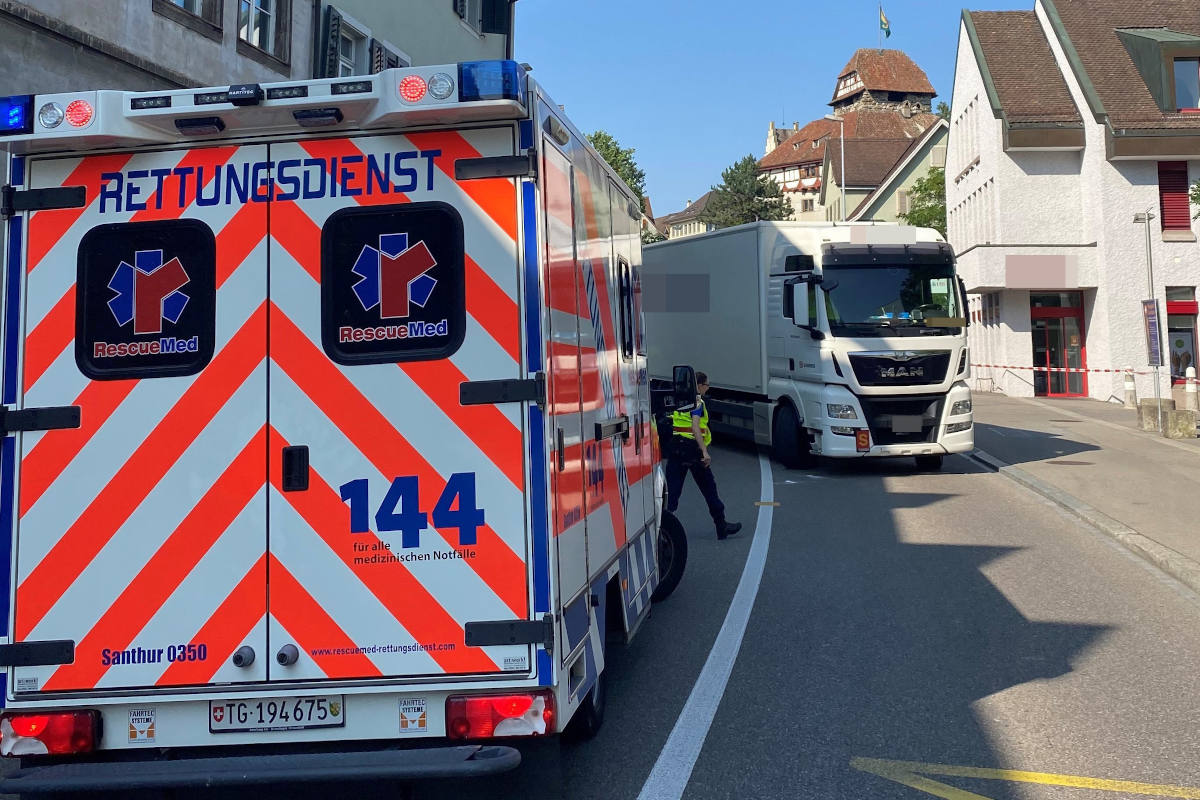 Ein 59-jähriger Chauffeur fuhr kurz vor 17 Uhr mit seinem Lastwagen von der Balierestrasse auf die Zürcherstrasse. Gemäss den bisherigen Erkenntnissen der Kantonspolizei Thurgau kam es im Bereich des Fussgängerstreifens zur Kollision mit einem Fussgänger, der die Zürcherstrasse überqueren wollte.