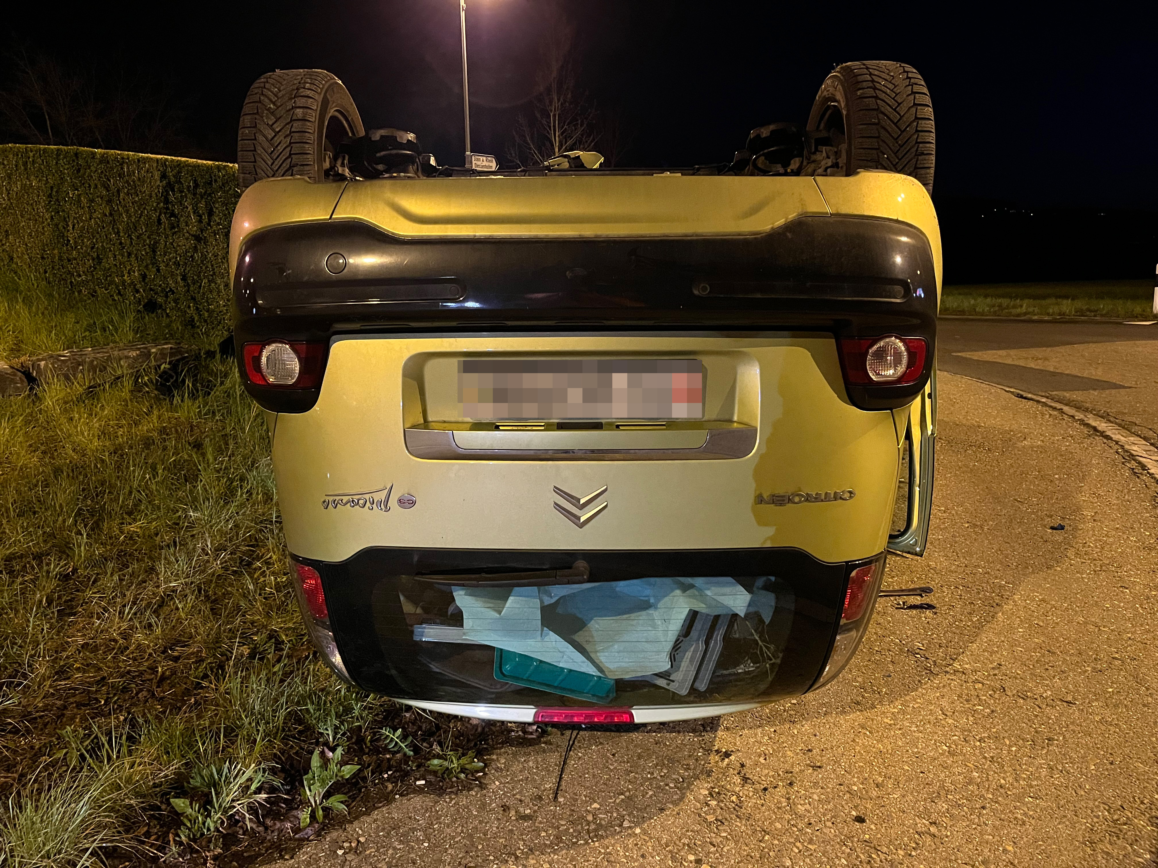 Das Fahrzeug kam auf dem Dach liegend zum Stillstand. (Bildquelle: Kapo TG)