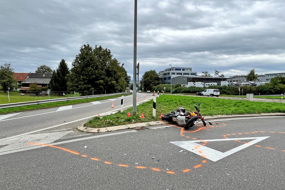 Bei einem Selbstunfall bei der Autobahneinfahrt Frauenfeld West wurde eine 51-jährige Motorradfahrerin tödlich verletzt (Bildquelle: Kantonspolizei Thurgau)