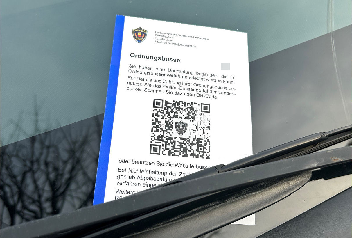 Seit Dezember 2024 sind die Ordnungsbussenzettel der Landespolizei mit einem QR-Code versehen. Scant man den Code wird man zum Bussenportal der Landespolizei geführt. Damit bietet die Landespolizei seinen Bürgerinnen und Bürgern eine schnellere und einfachere Möglichkeit an, Ordnungsbussen digital zu bezahlen.