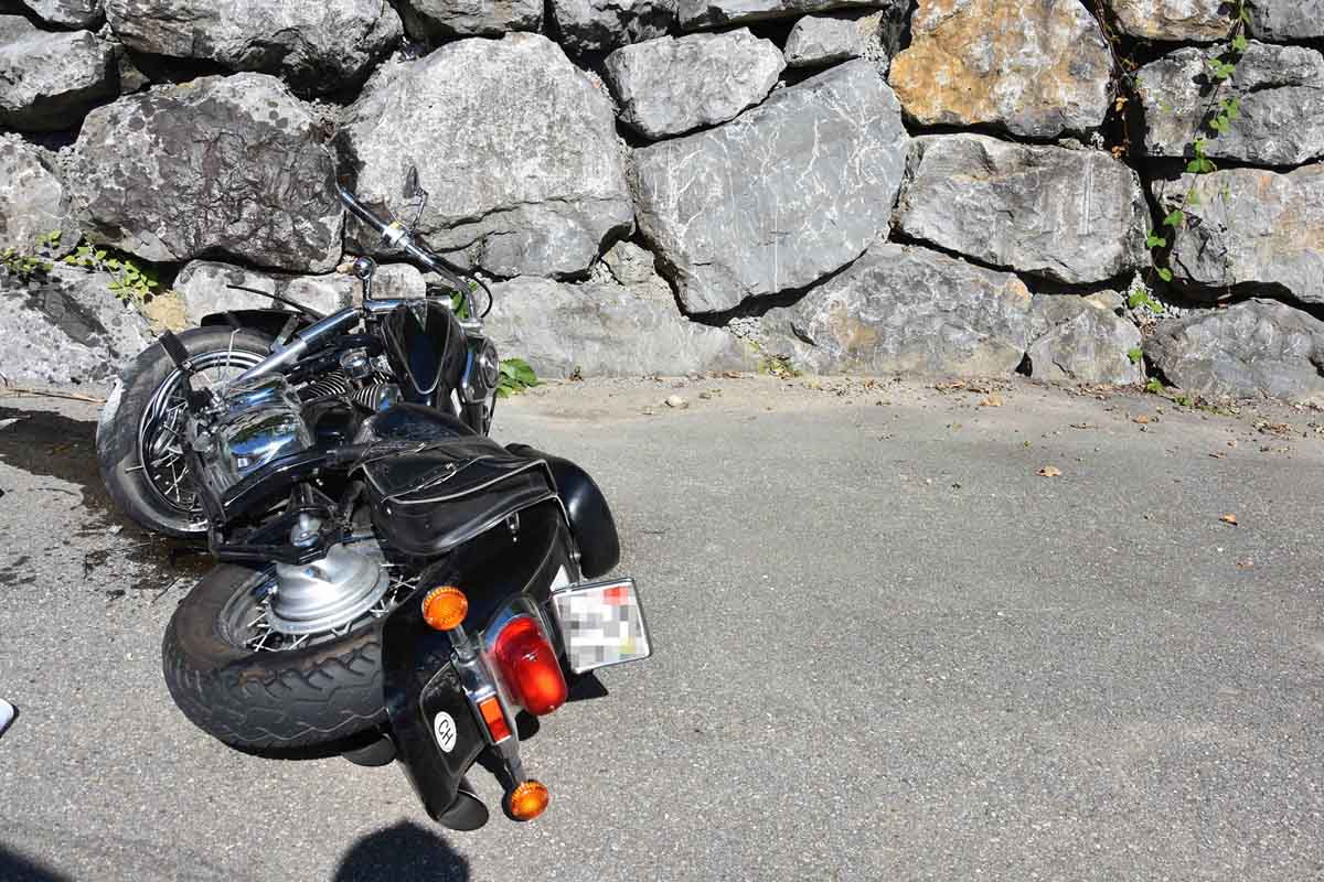 Ein 74-jähriger Mann fuhr heute mit seinem Motorrad von Mühlrüti Richtung Fischingen. Aus unbekannten Gründen kam er mit seinem Motorrad vor einer Linkskurve, Höhe Hüttenstettenstrasse, rechts auf einen Ausstellplatz und prallte dort frontal gegen eine Mauer.