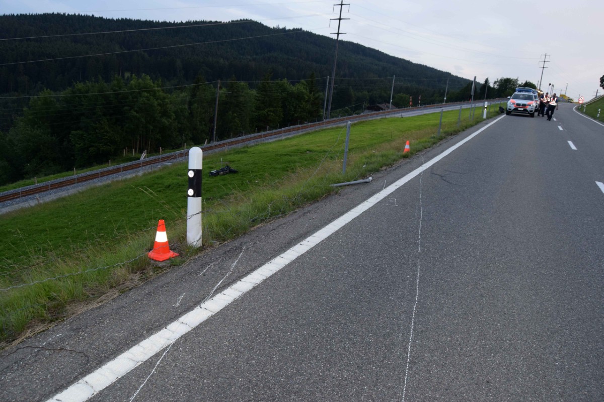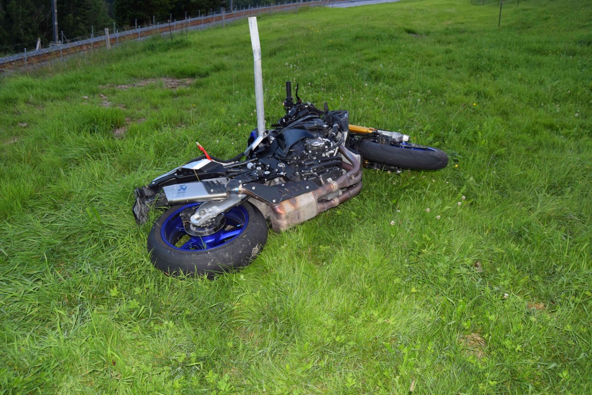 Anschliessend kam der Lenker mit seinem Motorrad rund 40 Meter unterhalb der Strasse in der angrenzenden Wiese zum Stillstand. Der Motorradfahrer erlitt durch den Sturz schwere, unbestimmte Verletzungen im Beinbereich. Er wurde durch den aufgebotenen Rettungsdienst am Unfallort erstversorgt und anschliessend mit der Rega ins Spital überflogen.