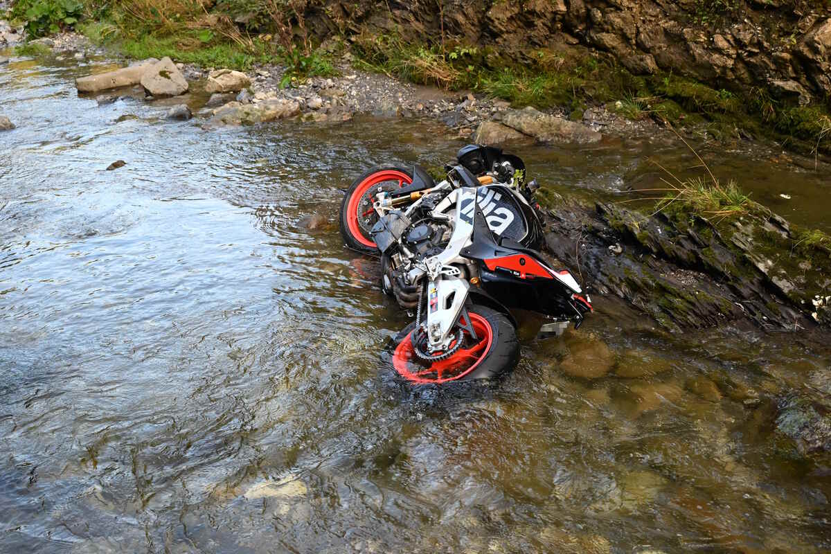 Am Samstag (02.09.2023), um 18:25 Uhr kam ein 33-jähriger Mann mit seinem Motorrad von der Wildhauserstrasse ab und landete im Simmibach. Er verletzte sich unbestimmt.