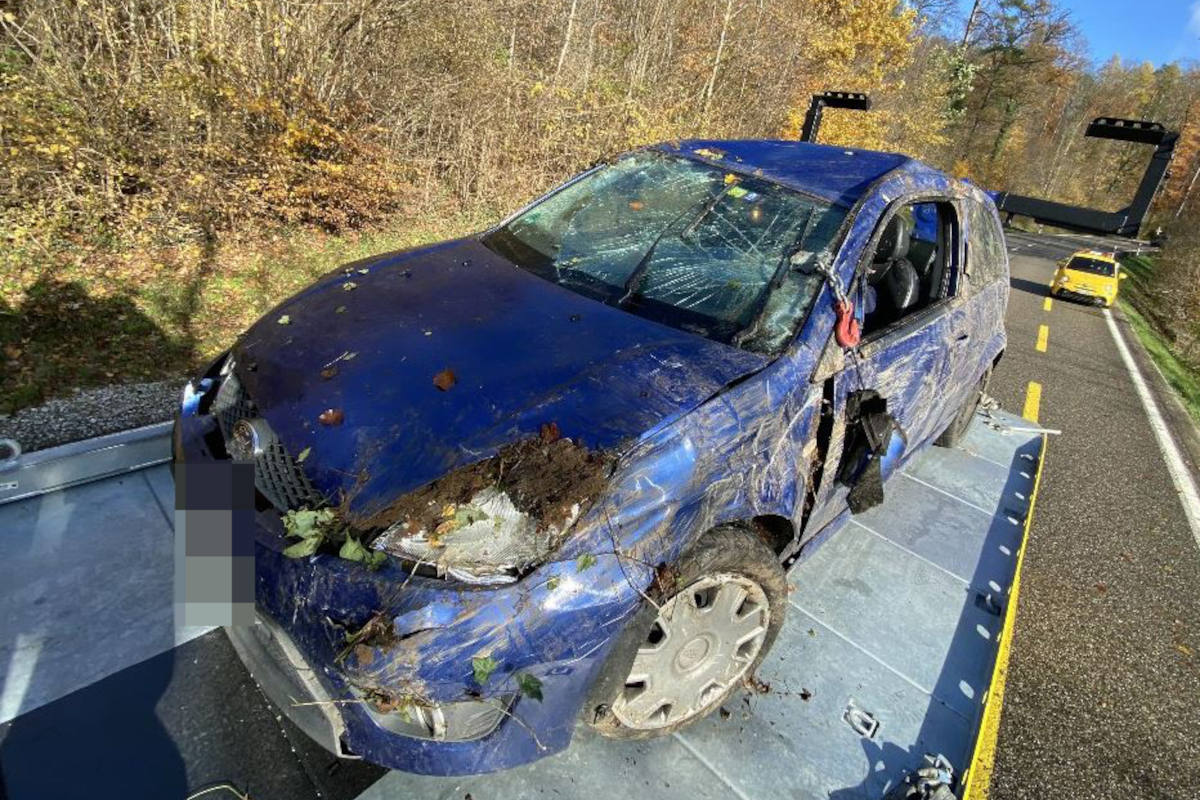 Verlassenes Auto auf Dach liegend gefunden (Bildquelle: Kapo AG)