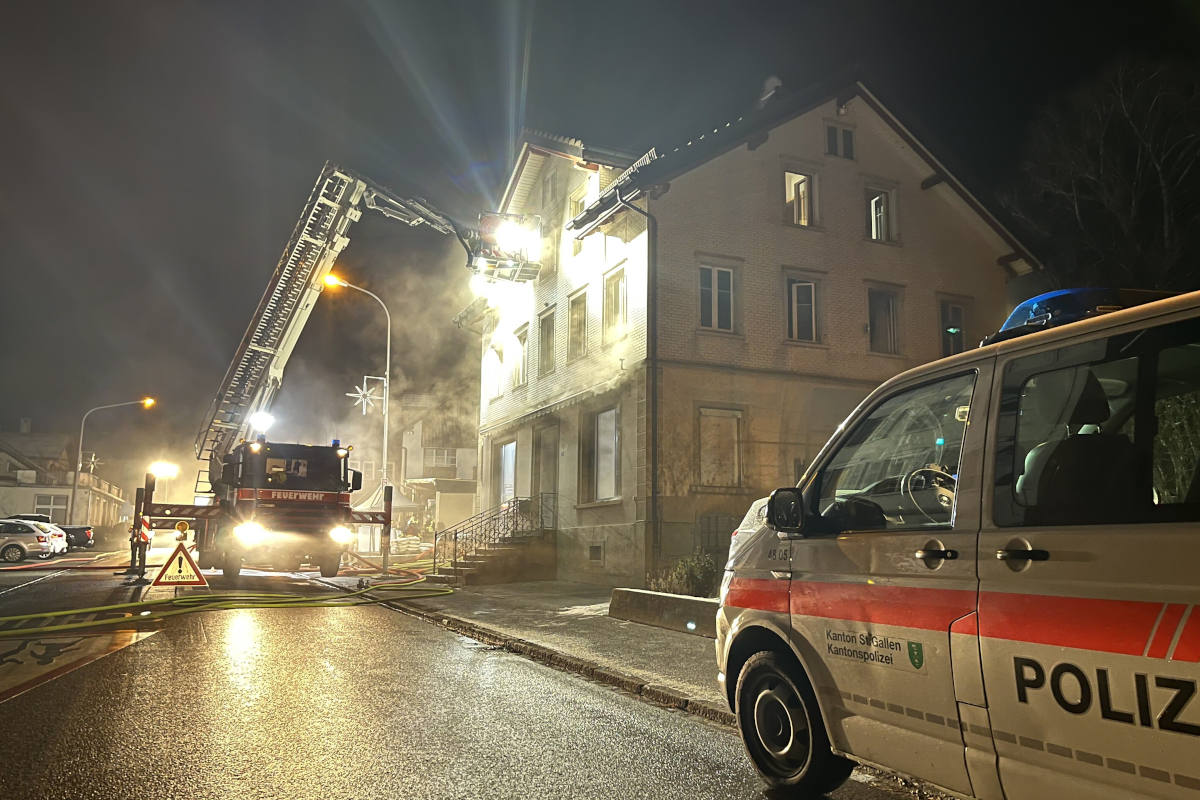 Am Samstag (08.01.2022), kurz nach 01:00 Uhr, ist es an der Toggenburgerstrasse zu einem Brand in einem Mehrfamilienhaus gekommen. Die Feuerwehr rettete vier Bewohner mittels Hubretter aus dem Gebäude. Drei Personen wurden leicht verletzt und durch den Rettungsdienst ins Spital überführt. Die Brandursache ist noch unklar.