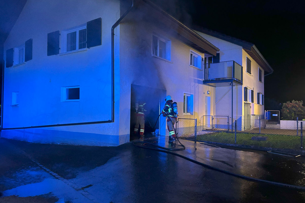 Noch bevor die Feuerwehr am Ereignisort eintraf, hatten die Bewohnenden damit begonnen, die Flammen zu löschen. Die Feuerwehr entlüftete anschliessend sämtliche Wohnungen und die Garage.