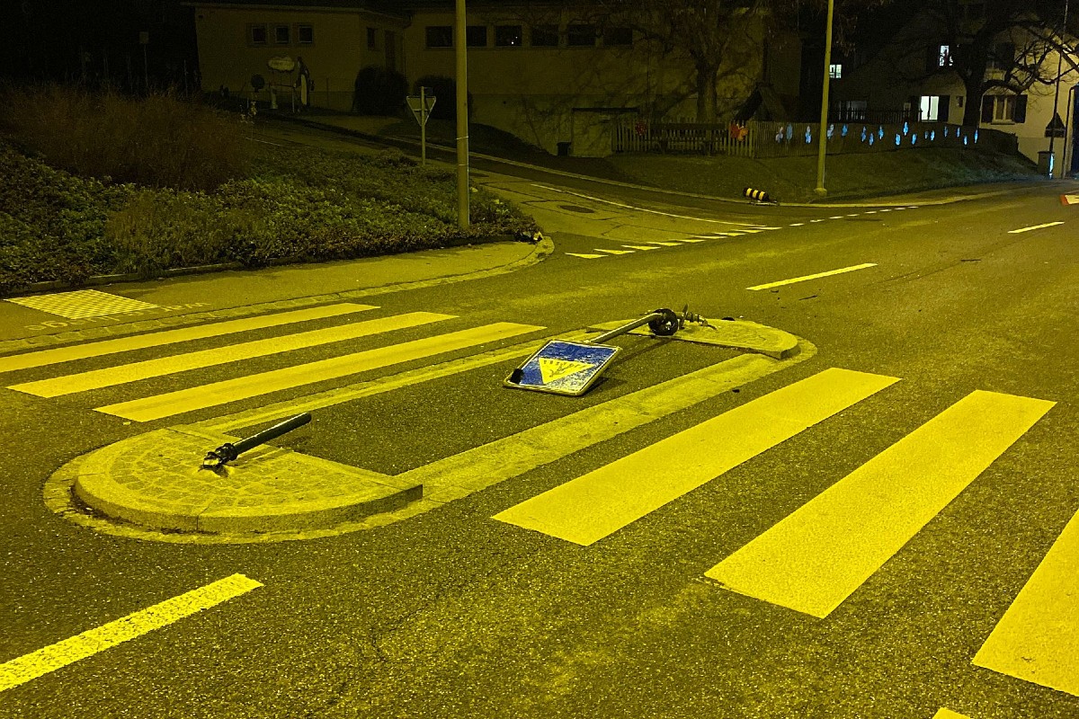 Im Bereich der Bushaltestelle Mühlestett geriet er mit seinem Fahrzeug über den linksseitigen Fahrbahnrand hinaus und kollidierte in der Folge frontal mit dem in der Strassenmitte befindlichen Verkehrsteiler sowie einem Signalträger. Nach der Kollision fuhr der unfallverursachende Lenker weiter und parkierte sein beschädigtes Fahrzeug am Eiweg.