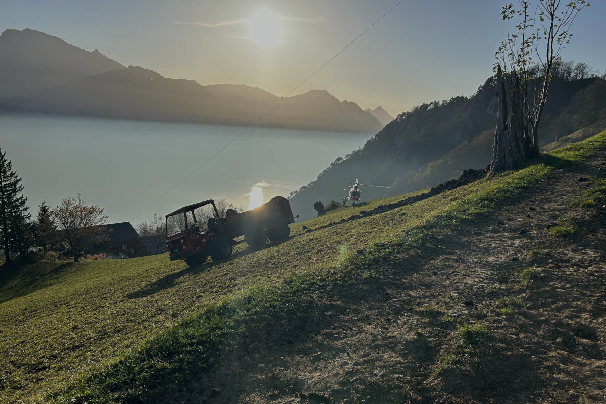 Am Freitagnachmittag kam es in Gersau zu einem Arbeitsunfall. Ein Landwirt kippte beim Austragen von Mist auf einer Wiese mit seinem Fahrzeug und überschlug. Beim Sturz verletzte sich der Mann unbestimmt und wurde mit der Rega in eine Spital geflogen.