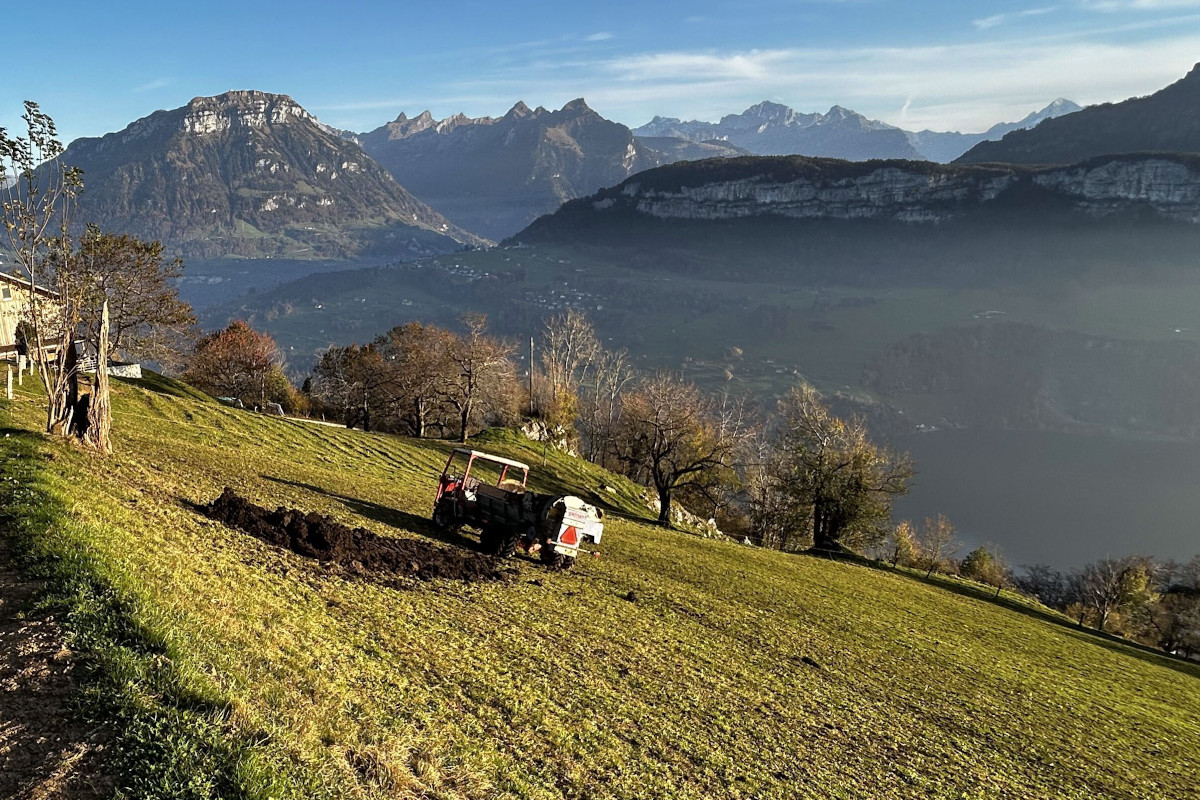Am Freitagnachmittag, 8. November 2024, wollte ein 39-jähriger Landwirt im Gebiet Föhrenberg in Gersau mit einem Motorkarren Mist austragen. Kurz vor 15 Uhr kippte das Arbeitsfahrzeug im steilen Gelände, überschlug sich einmal und kam wieder auf den Rädern zum Stillstand.