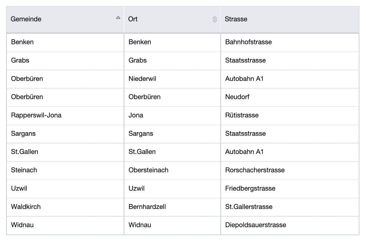 Radar - Warnungen: Diese Liste ist gültig per 04. Februar 2022 für den Kanton St.Gallen