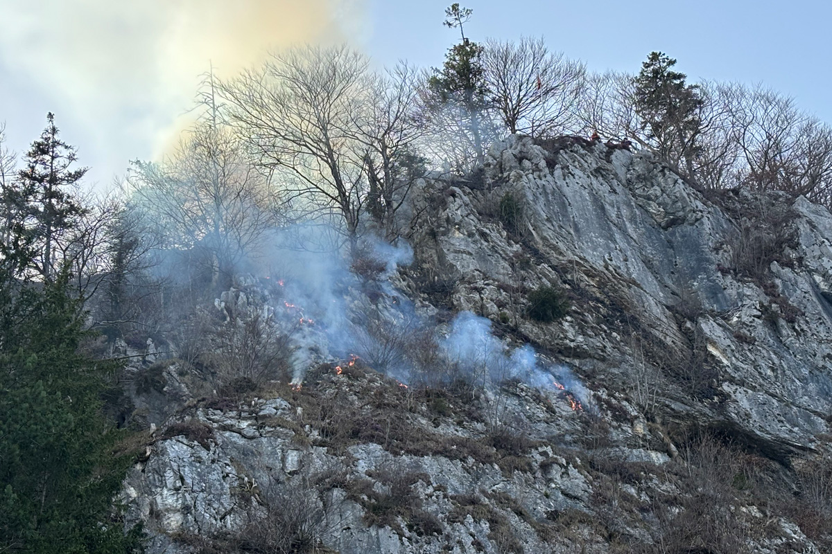 Am Samstag, 7. März 2026, gegen 16:15 Uhr, informierten mehrere Personen unabhängig voneinander die Kantonspolizei Glarus, dass es in einer bewaldeten Felswand oberhalb Riedern/Glarus brenne.