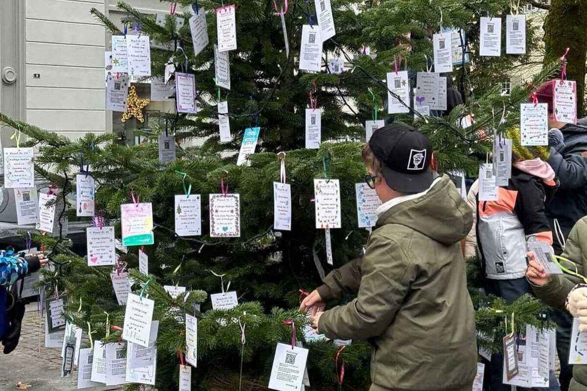 Ein einfaches Prinzip: Kinder aus sozial benachteiligten Familien dürfen sich Geschenke im Wert von rund 30 Franken wünschen. Dazu werden von Schulkindern Wunschkarten gestaltet, die an den Wunschbaum gehängt werden. Wer möchte, kann sich einen solchen Wunsch pflücken und erfüllen und bringt damit Kinderaugen zum Strahlen.