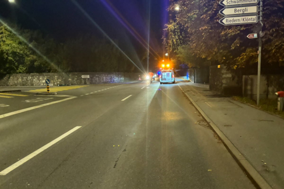 Das E-Bike wurde durch den Personenwagen erfasst und der Fahrer zu Boden geschleudert. Der E-Bike-Lenker erlitt unbestimmte Verletzungen und wurde durch den Rettungsdienst ins Spital gebracht.