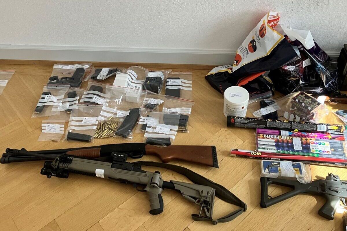 Bei den anschliessenden Hausdurchsuchungen stellte die Kantonspolizei in Zusammenarbeit mit dem Zürcher Entschärfungsdienst des Forensischen Instituts grössere Mengen an Explosivstoffen, Waffen und Betäubungsmitteln sicher.