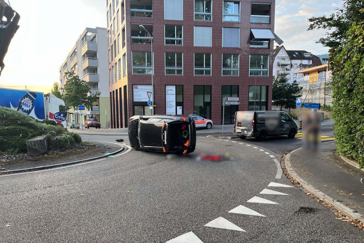 Das Auto der 56-Jährigen prallte anschliessend in einen Sandstein im Kreisel. In der Folge hob es ab, drehte sich und kam auf der Seite zum Stillstand. Durch den Unfall wurde die 56-Jährige unbestimmt verletzt. Sie wurde vom Rettungsdienst ins Spital gebracht. Es entstand Sachschaden von rund 20'000 Franken.