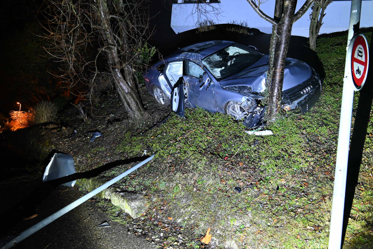 Dort kollidierte es nach wenigen Metern zuerst mit einem Verkehrsteiler «Biene Maya» und einem Metallpfosten, welche die Zufahrt für Motorfahrzeuge verhindern sollten. Das Auto durchbrach diese und fuhr einen Kandelaber um. Anschliessend fuhr es linksseitig in eine aufsteigende Böschung einer Liegenschaft an der Hohrainstrasse. Dort kam es nach einigen Metern zwischen Sträuchern und Bäumen zum Stillstand.