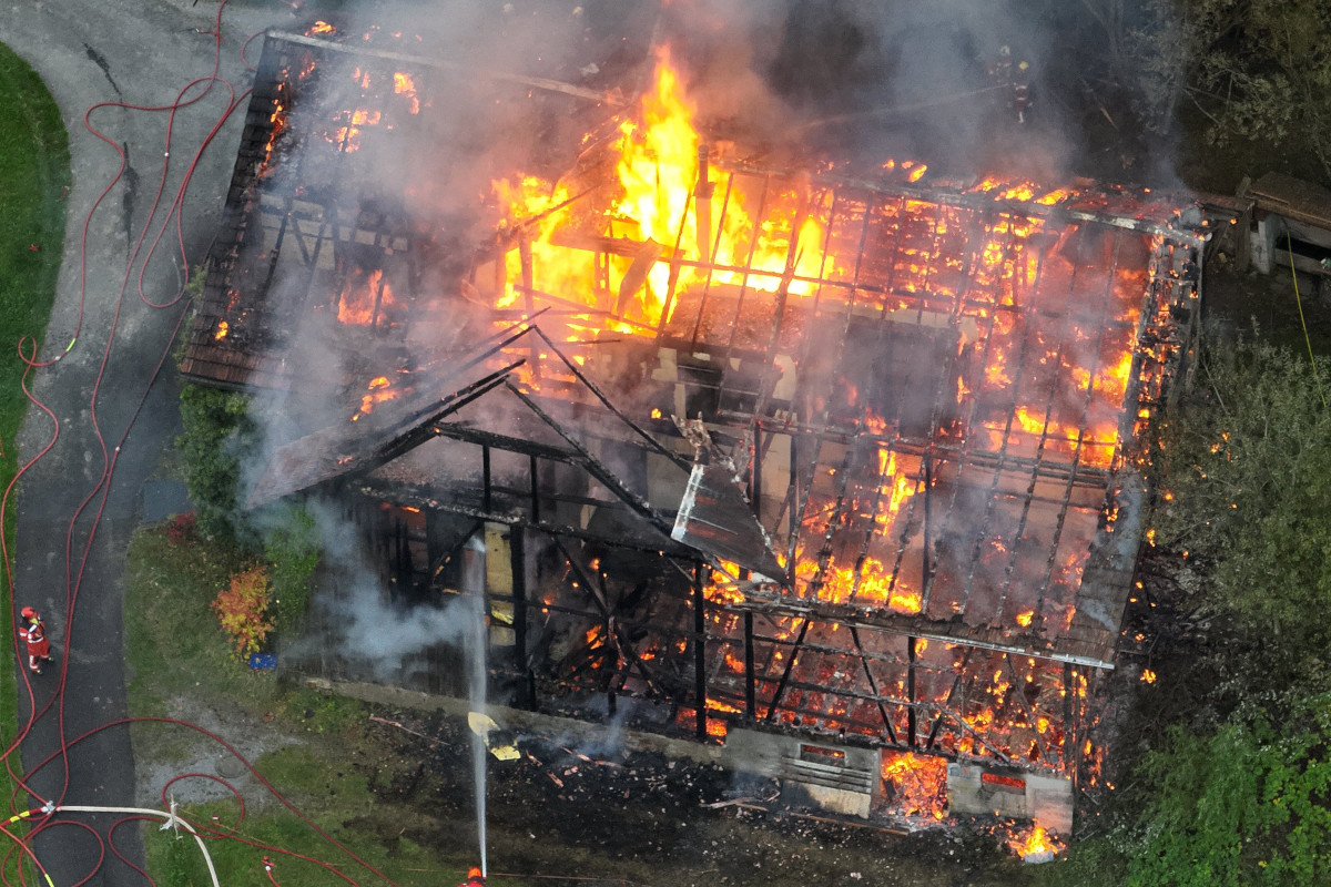 Die aufgebotenen Einsatzkräfte trafen den Scheunenanbau bereits in Vollbrand an und auch im Innern des Wohnbereichs waren Flammen sichtbar, die bald aus dem Dach schlugen. In der Folge brannte die Liegenschaft vollständig aus.