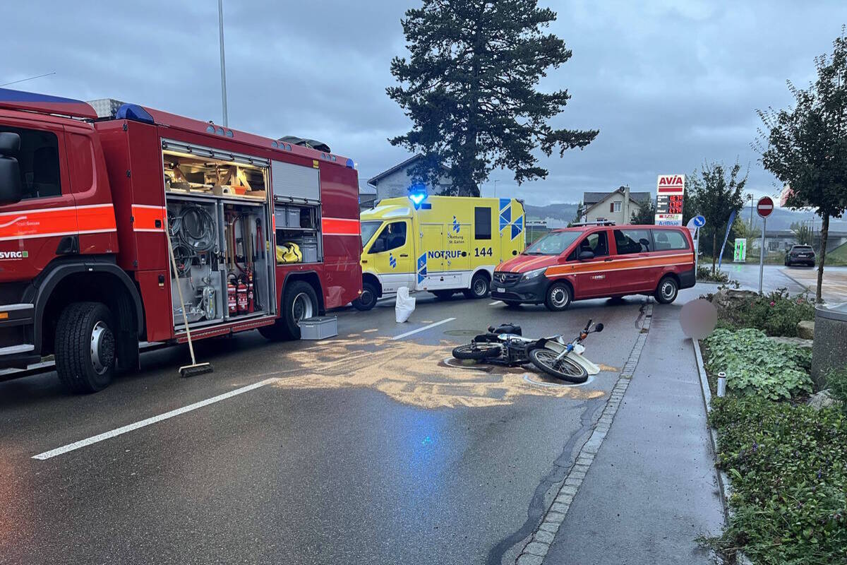 Der 15-Jährige fuhr mit seinem Kleinmotorrad auf der Bischofszellerstrasse in Richtung Gossau. Als er sein Kleinmotorrad verkehrsbedingt abbremste, rutschte das Vorderrad weg, wobei der Jugendliche zu Fall kam. Er wurde dabei leicht verletzt. Der Rettungsdienst brachte ihn ins Spital. Es entstand Sachschaden von rund 200 Franken.