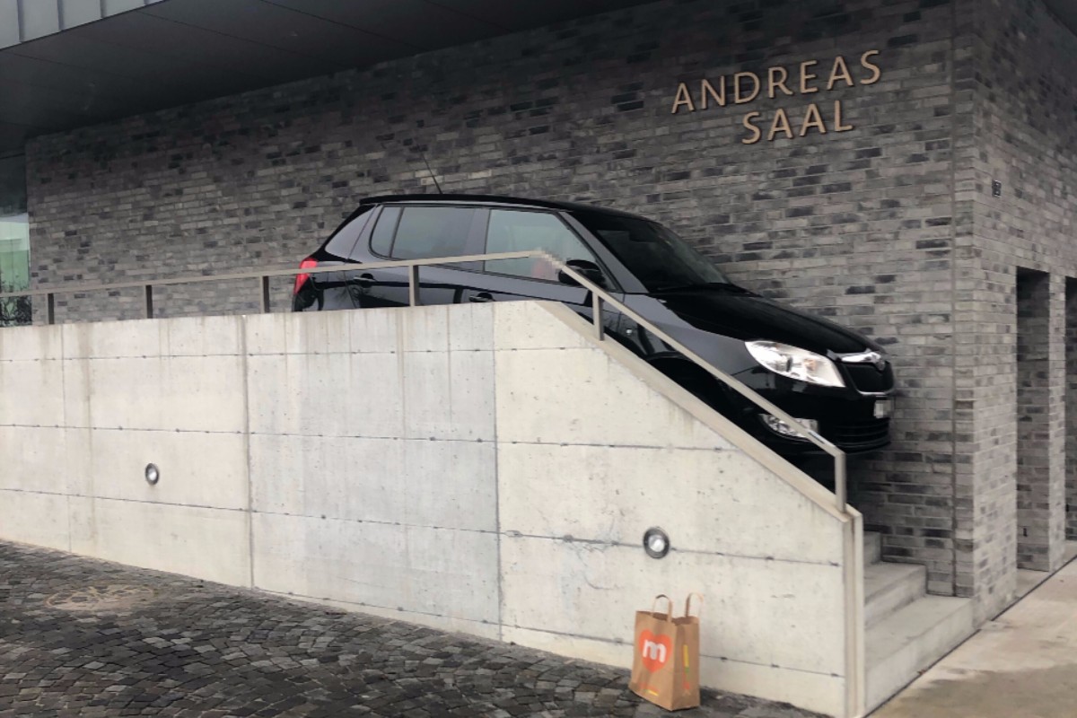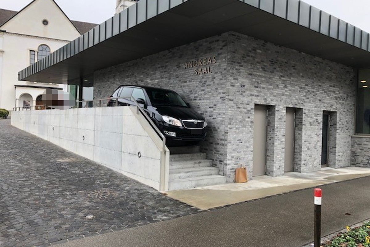 Die 82-jährige Frau parkierte in Gossau SG ihr Auto auf dem Vorplatz der Andreas-Kirche. Als sie dort wieder wegfahren wollte, fuhr sie anstatt über die Zufahrt über die Fussgängertreppe zur Merkurstrasse.