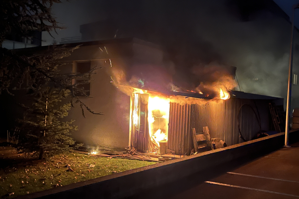Eine Anwohnerin hatte den Brand bemerkt und die Kantonale Notrufzentrale verständigt. Die eintreffenden Rettungskräfte trafen einen brennenden Geräteschuppen an, der an Garagenboxen angebaut ist. Die Feuerwehr brachte den Brand rasch unter Kontrolle und konnte ein Übergreifen des Feuers auf die Garagenboxen verhindern. Personen wurden nicht verletzt. Am Geräteschuppen und der Aussenhülle der Garagenboxen entstand Sachschaden von schätzungsweise mehreren 10'000 Franken. Die Brandursache ist unklar und wird durch das Kompetenzzentrum Forensik der Kantonspolizei St.Gallen untersucht.
