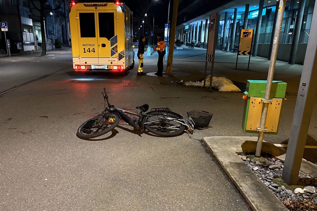 Am Montag (03.02.2025), kurz vor Mitternacht, kam es auf der Bahnhofstrasse zu einem Selbstunfall einer E-Bikerin. Die 39-jährige Frau wurde dabei verletzt. Sie wurde als fahrunfähig eingestuft.