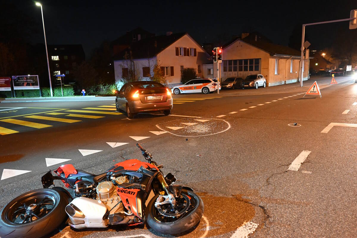 Dabei kam es zum Zusammenstoss zwischen den beiden Fahrzeugen, wodurch der Motorradfahrer stürzte. Der 44-Jährige wurde dabei unbestimmt verletzt. Er musste vom Rettungsdienst ins Spital gebracht werden. An den Fahrzeugen entstand Sachschaden von rund 20'000 Franken.