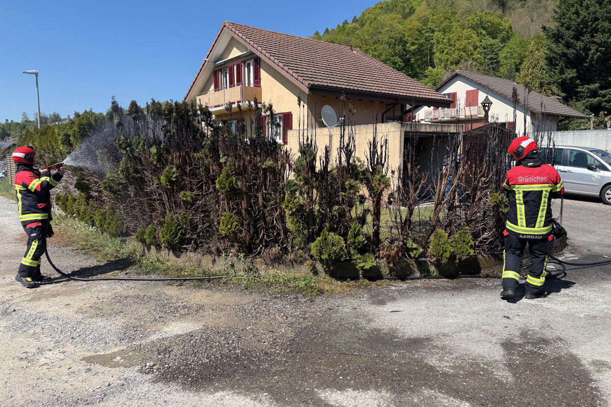 Am Mittwoch, 22. April 2026, kam es in Gränichen zu einem Brand. Beim Abflammen von Unkraut geriet eine Hecke in Brand. Verletzt wurde niemand, die Hecke wurde jedoch völlig zerstört.