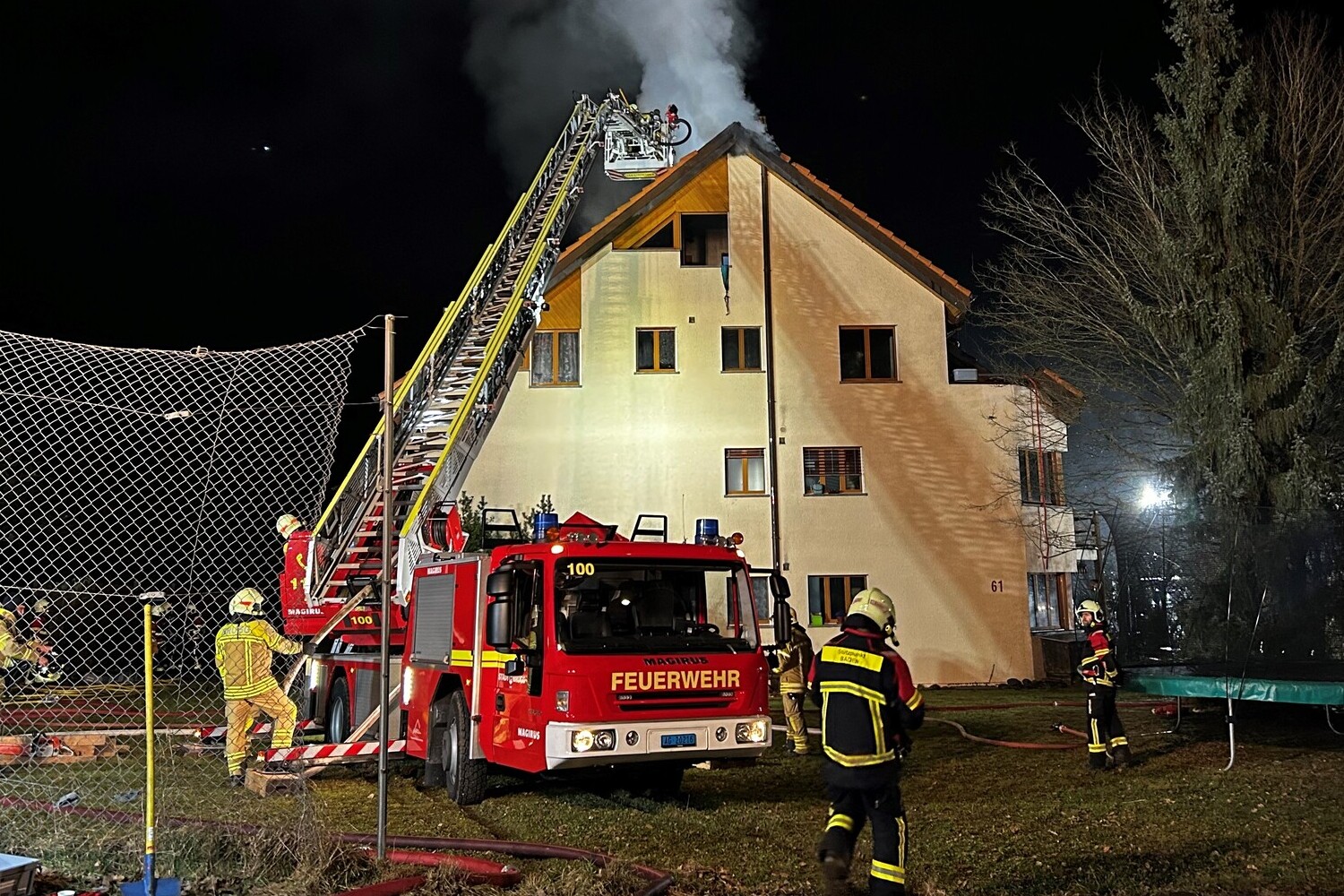 Die Feuerwehr war während mehrerer Stunden mit den Löscharbeiten beschäftigt. Die Wohnungen sind aufgrund des Feuer- und Wasserschadens unbewohnbar. Es entstand beträchtlicher Sachschaden.