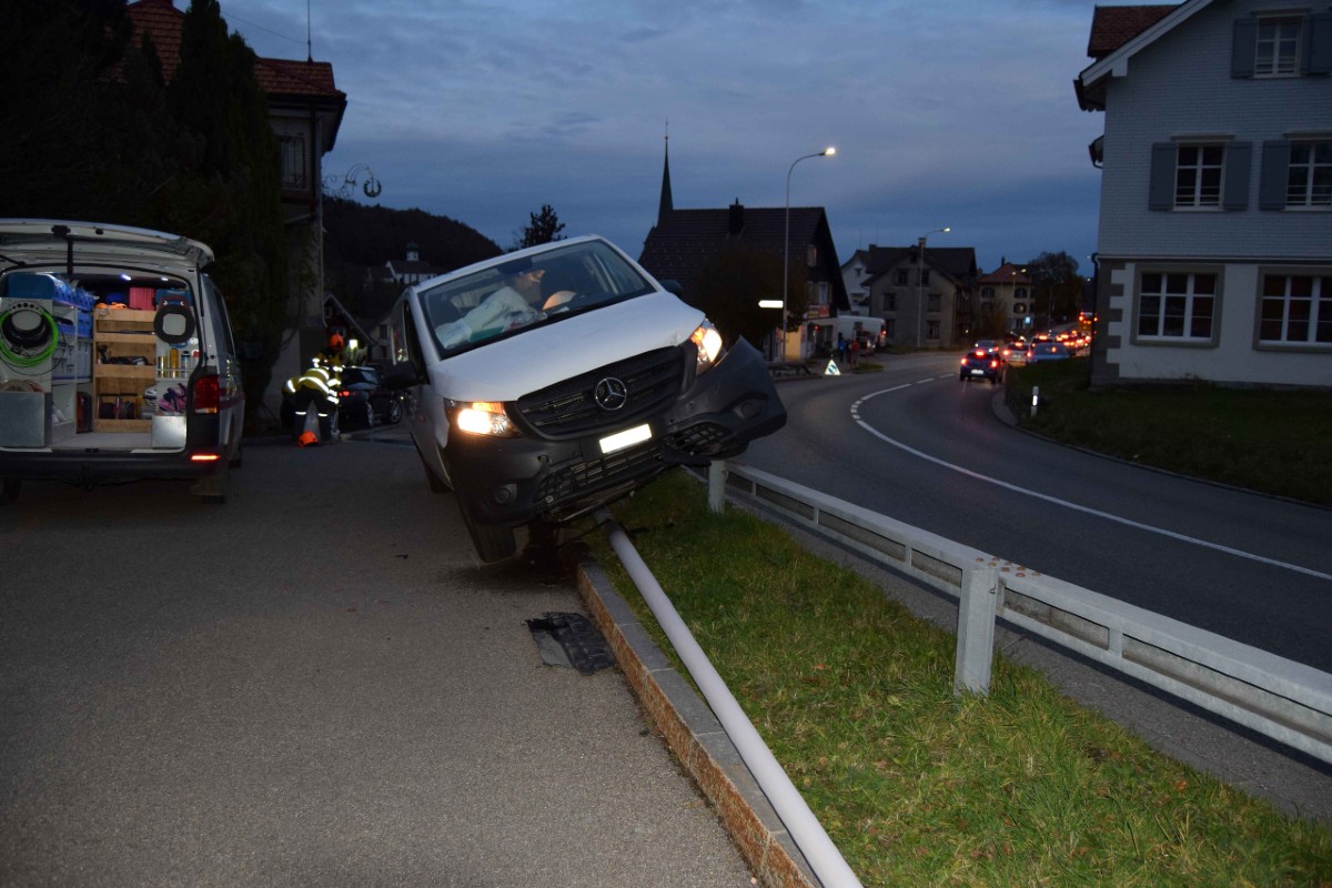 Das Fahrzeug wurde durch die Leitplanke angehoben und stiess anschliessend gegen einen Beleuchtungsmast der Strasse, bevor es schliesslich zum Stillstand kam. Der Fahrzeuglenker blieb unverletzt.