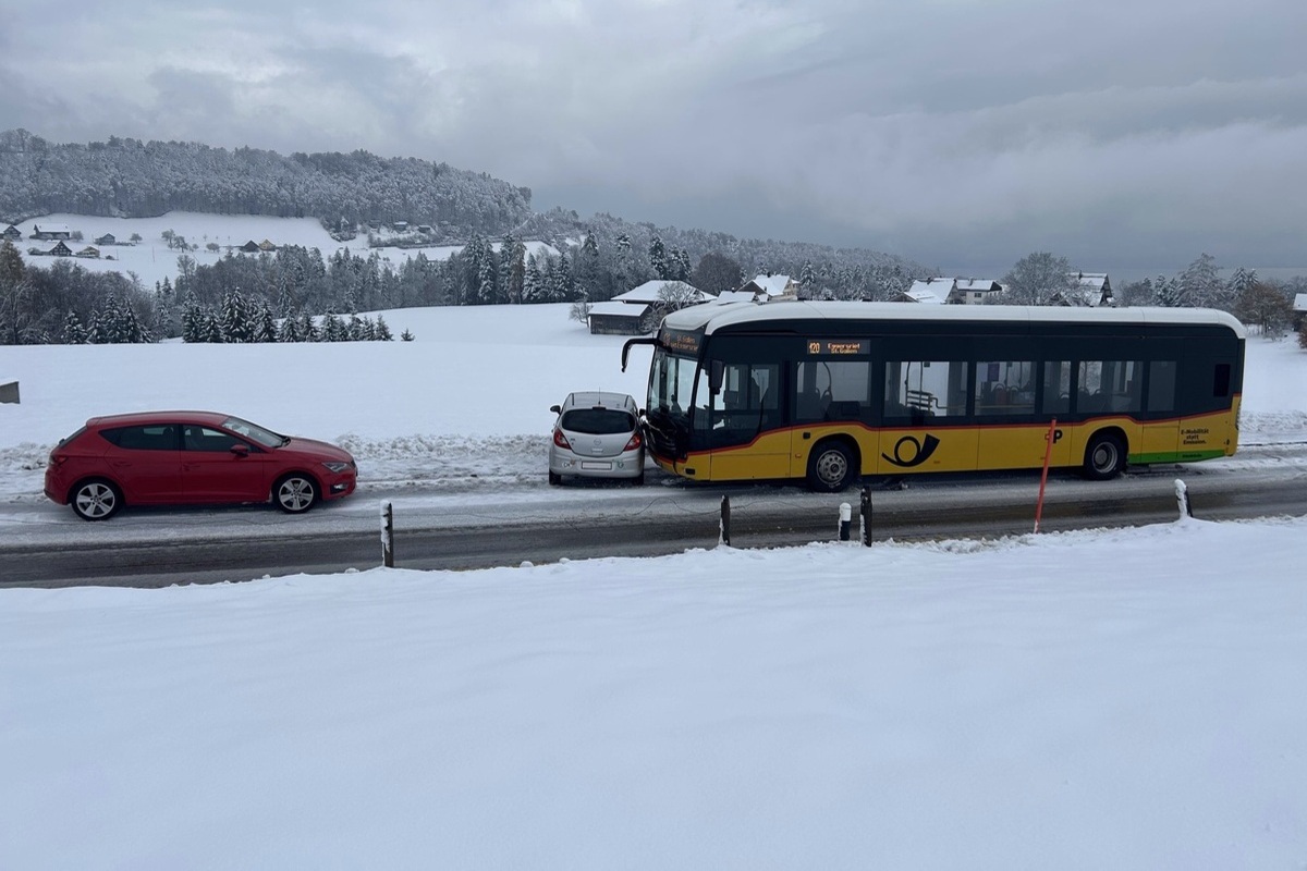 Die 32-jährige Automobilistin sowie der Postautochauffeur haben sich leicht verletzt und begaben sich selbständig in ärztliche Behandlung. Der Sachschaden an den drei involvierten Fahrzeugen beträgt rund 30'000 Franken.