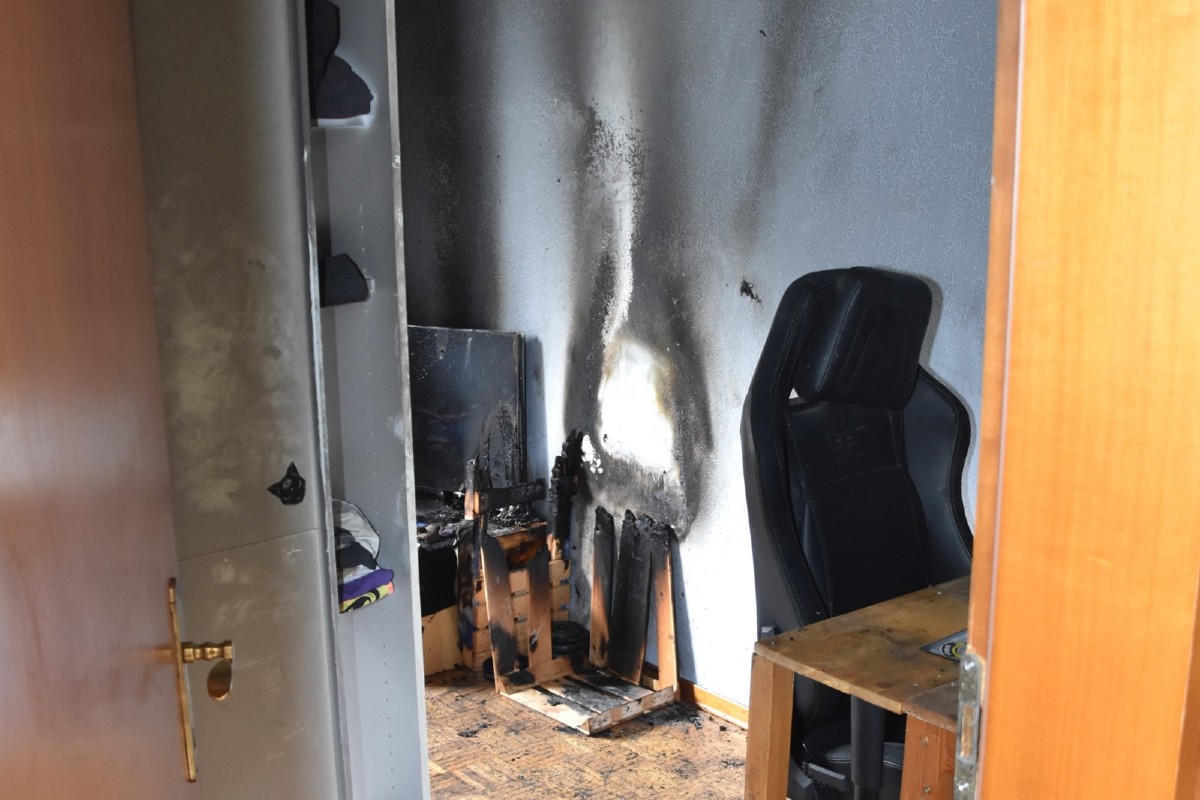Die Frau alarmierte sofort über den Notruf die Feuerwehr und begab sich selbständig in Sicherheit. Die mit 15 Einsatzkräften und vier Fahrzeugen ausgerückte Feuerwehr Vorderprättigau hatte den Zimmerbrand rasch unter Kontrolle und konnte ein Ausbreiten des Feuers verhindern.