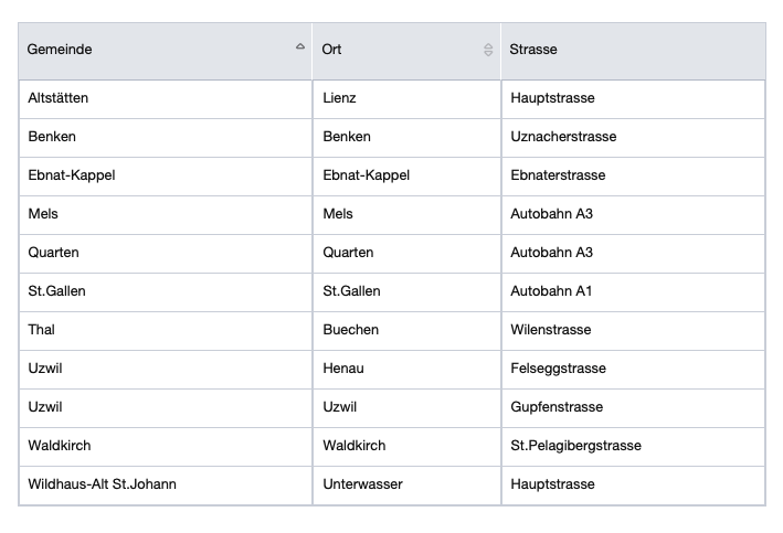 Anbei die Liste der Geschwindigkeitskontrollen der Kapo St.Gallen. An diesen Stellen wird die Geschwindigkeit gemessen.