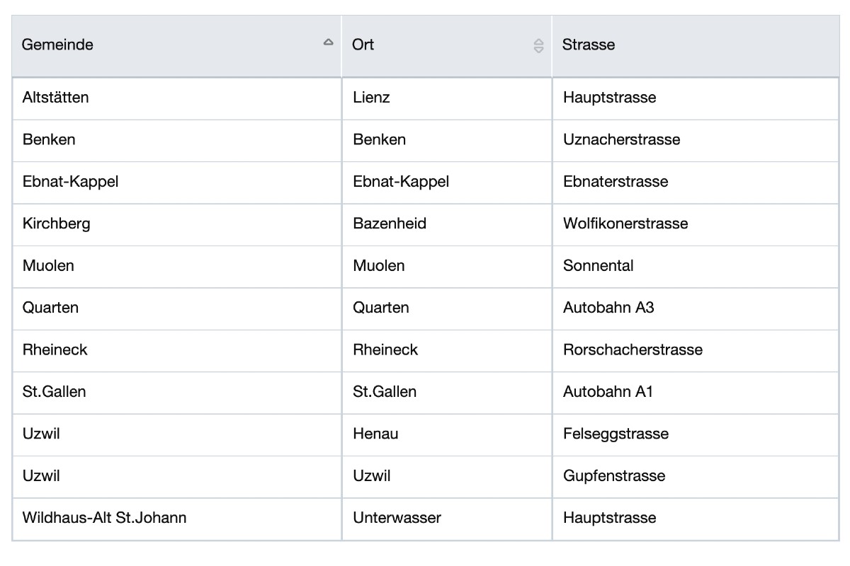 Anbei die Liste der Geschwindigkeitskontrollen der Kapo St.Gallen. An diesen Stellen wird die Geschwindigkeit gemessen.