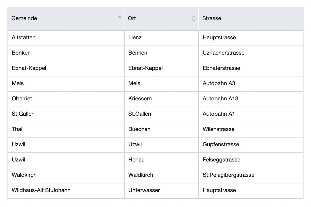 Anbei die Liste der Geschwindigkeitskontrollen der Kapo St.Gallen. An diesen Stellen wird die Geschwindigkeit gemessen.