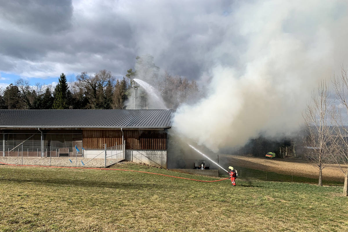 Bei einem Brand neben einer Hühnerzucht ist am Freitagnachmittag (25.02.2022) in Gundetswil (Gemeindegebiet Wiesendangen) ein Sachschaden von mehreren zehntausend Franken entstanden. Weder Personen noch Tiere sind verletzt worden.