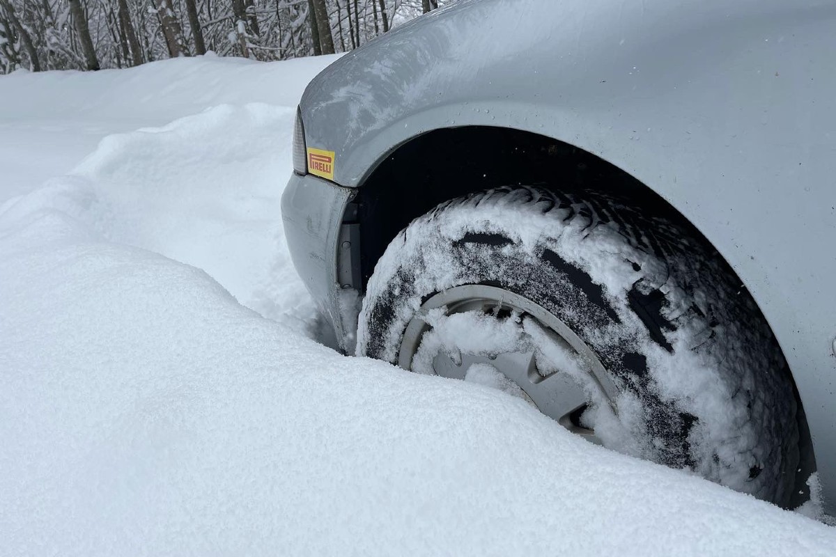 Auf der H19 - Hauptstrasse liegt Schnee auf der Fahrbahn.