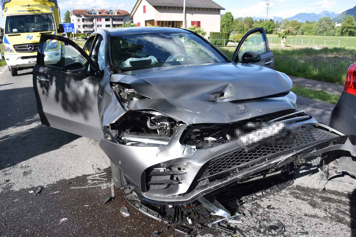 Gleichzeitig fuhr ein 21-jähriger Autofahrer mit seinem Auto von Buchs Richtung Haag und wollte Höhe Liegenschaft Nr. 14 links abbiegen. Dabei übersah er das entgegenkommende Auto des 27-jährigen Autofahrers und es kam zur Frontalkollision.