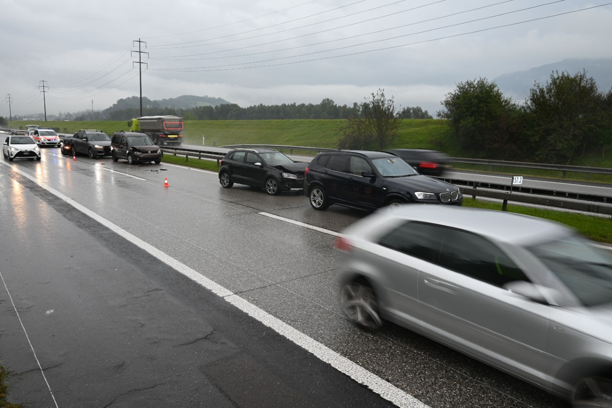 Im Morgenverkehr auf der Autobahn A13 Richtung Buchs kam es vorerst zu einer Auffahrkollision zwischen drei Autos, wobei das Auto einer 42-jährigen Frau gegen das Auto vor ihr prallte und dieses wiederum ins Auto davor geschoben wurde.