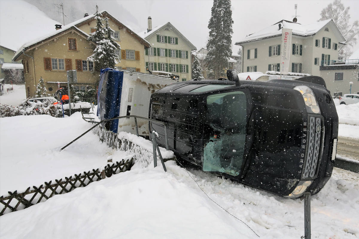 Die Lenkerin eines Geländewagens war bei winterlichen Strassenverhältnissen mit einem leeren Viehanhänger in Richtung Luchsingen unterwegs. In einer Linkskurve verlor die 20-Jährige die Kontrolle über die Fahrzeugkombination. Diese geriet rechts von der Fahrbahn, fuhr auf die angrenzende Leitplanke und kippte dadurch nach rechts auf die Seite.