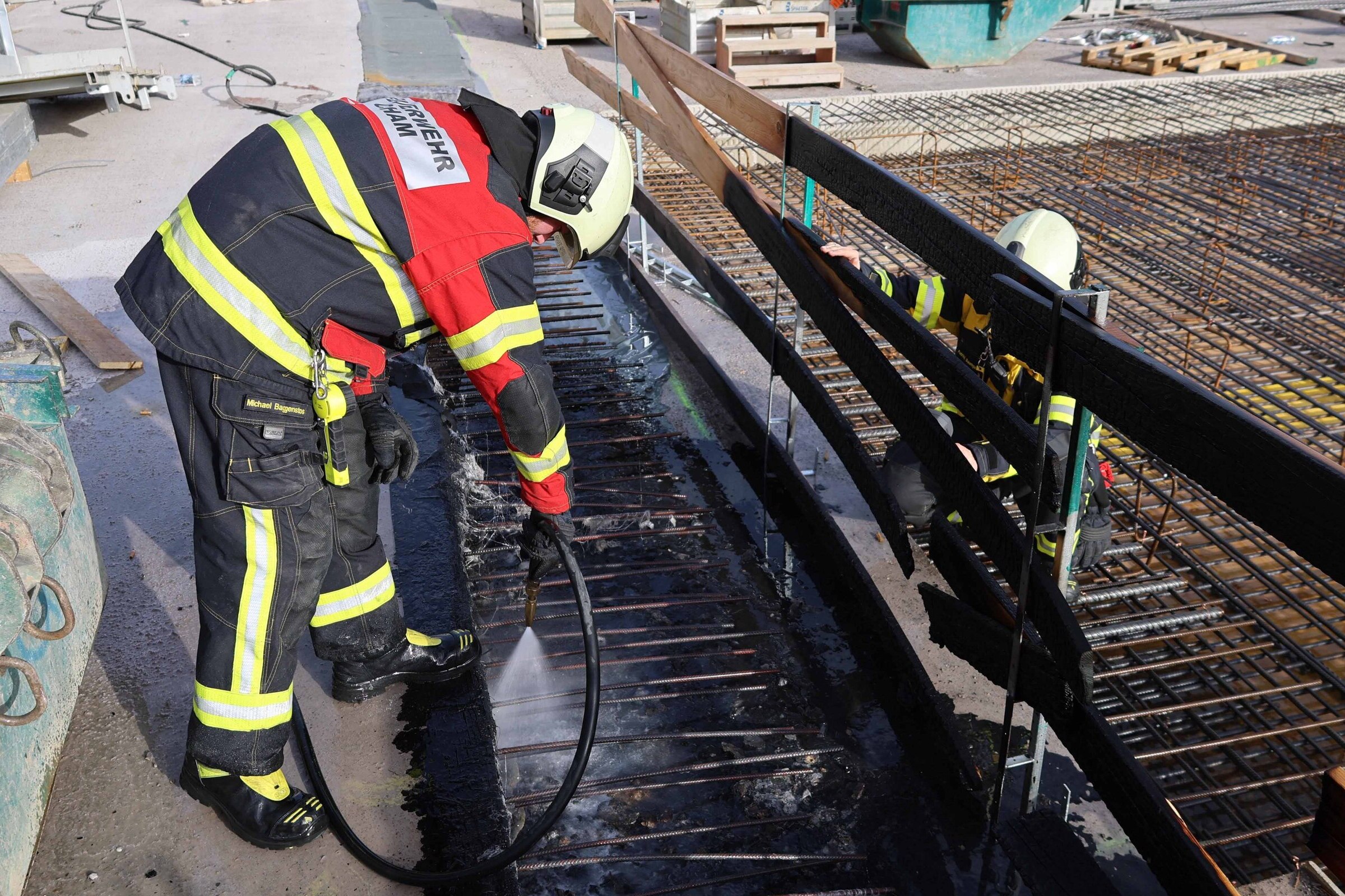 Ein kleiner Bitumenbrand brach auf einer Baustelle in Hagendorn aus, wurde aber schnell von der Feuerwehr gelöscht