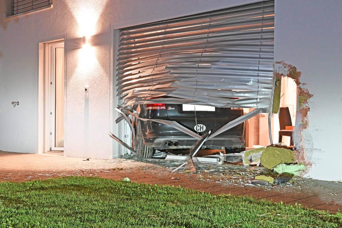 Am Samstagabend (25.06.2022) hat sich in Hallau ein Alleinunfall ereignet, wobei ein Fahrzeuglenker aus unbekannten Gründen von der Strasse abkam und folglich in ein Wohnhaus fuhr. Die involvierten Personen wurden leicht verletzt. Am Fahrzeug entstand Totalschaden.