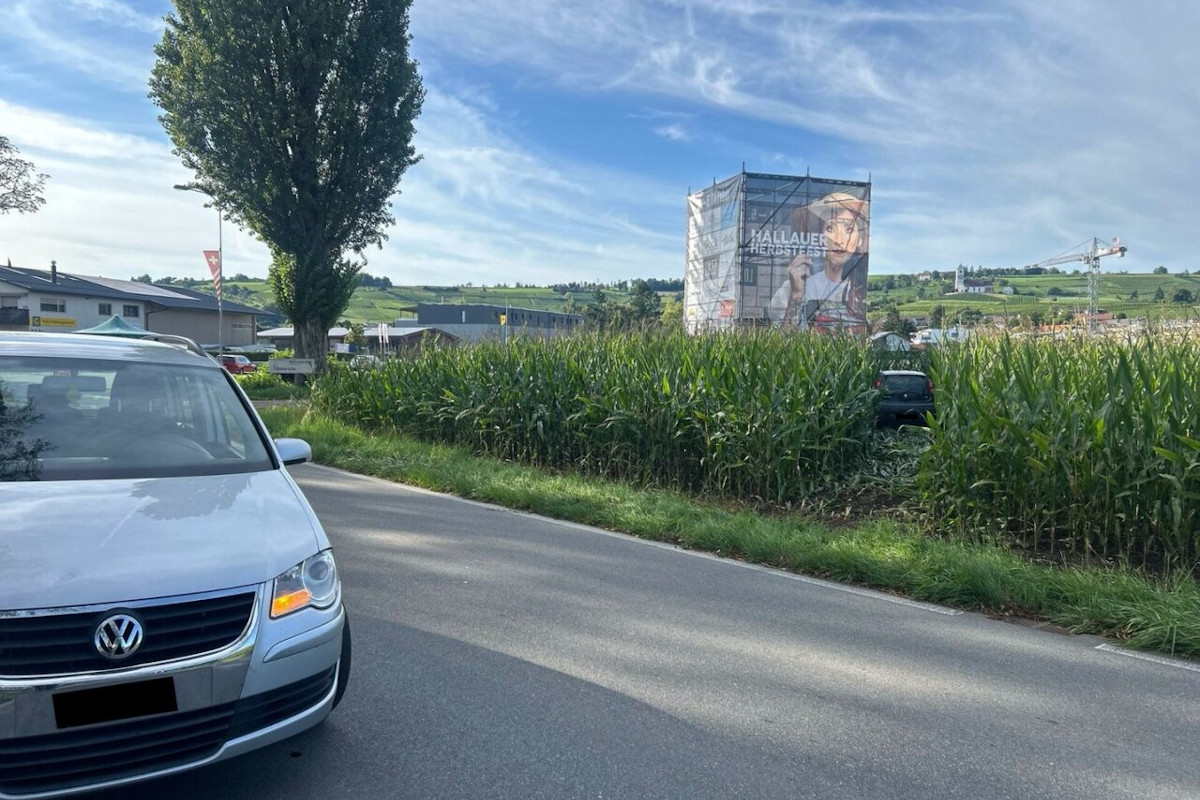 Am späten Samstag, 6. September 2025, kam es in Hallau zu einer Kollision zwischen zwei Autos. Ein Fahrzeuglenker kam dabei von der Strasse ab und endete im angrenzenden Maisfeld.
