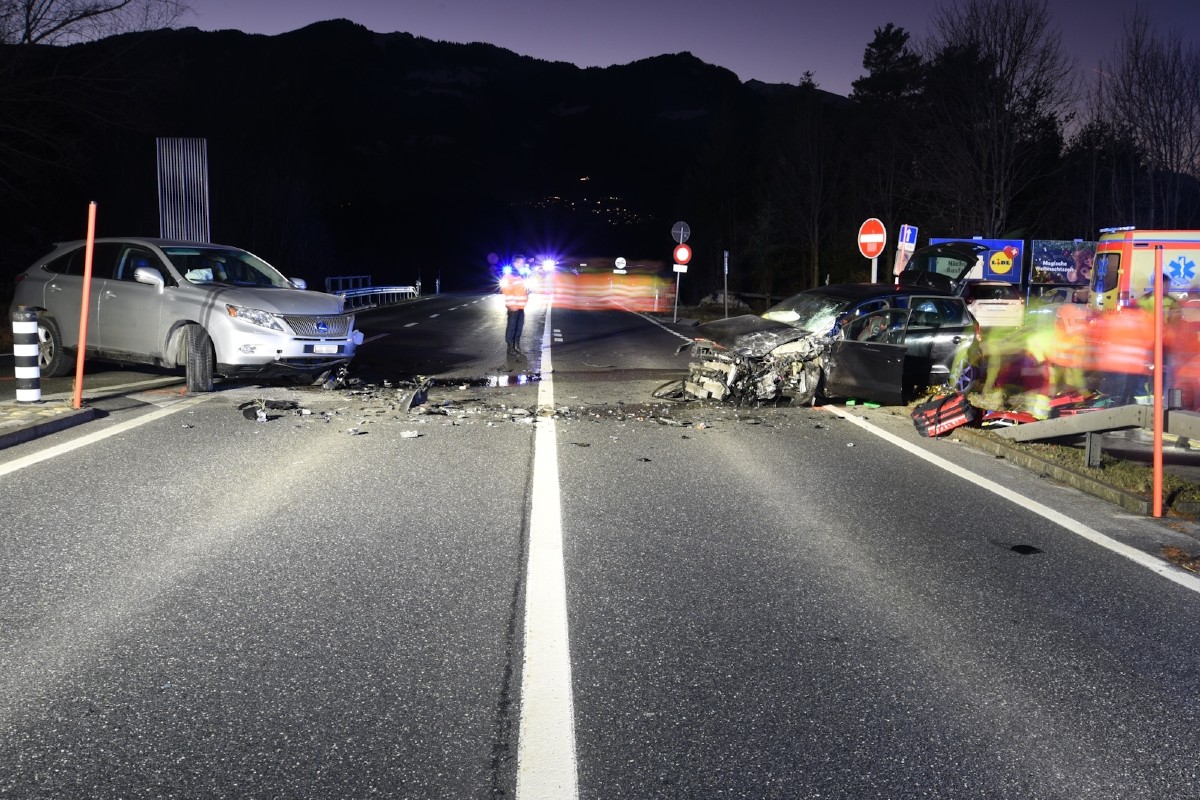 Heftige Frontalkollision bei Landquart im Kanton Graubünden